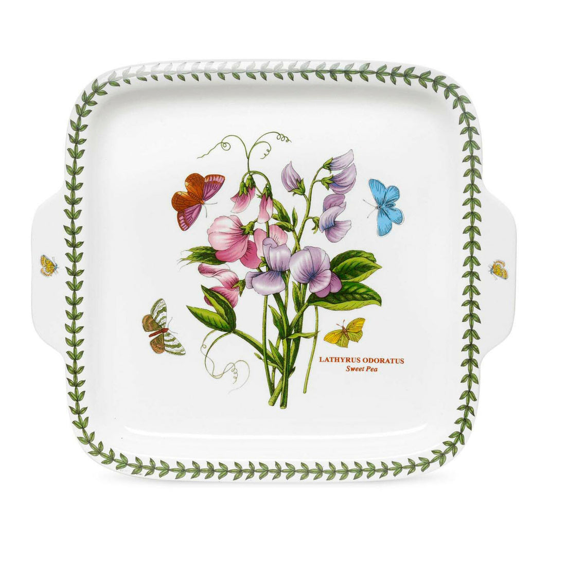 Portmeirion Botanic Garden - 32.5x28.5cm Square Handled Dessert Plate Sweet Pea