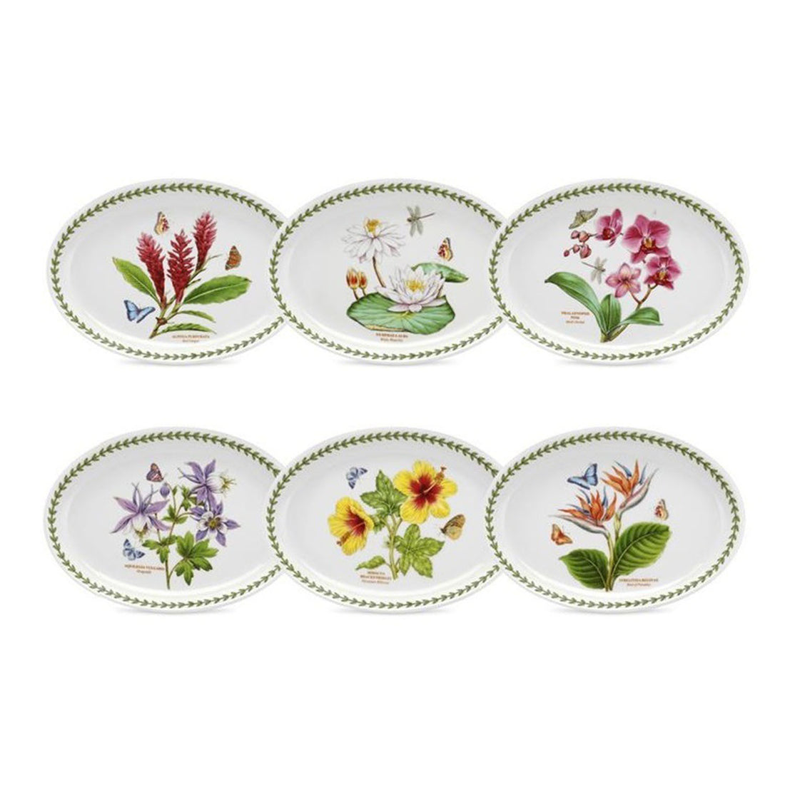 DESCRIPTION Portmeirion Exotic Botanic Garden - 27.4cm/10.5" Oval Platters (Set of 6)Red Ginger, White Waterlily...